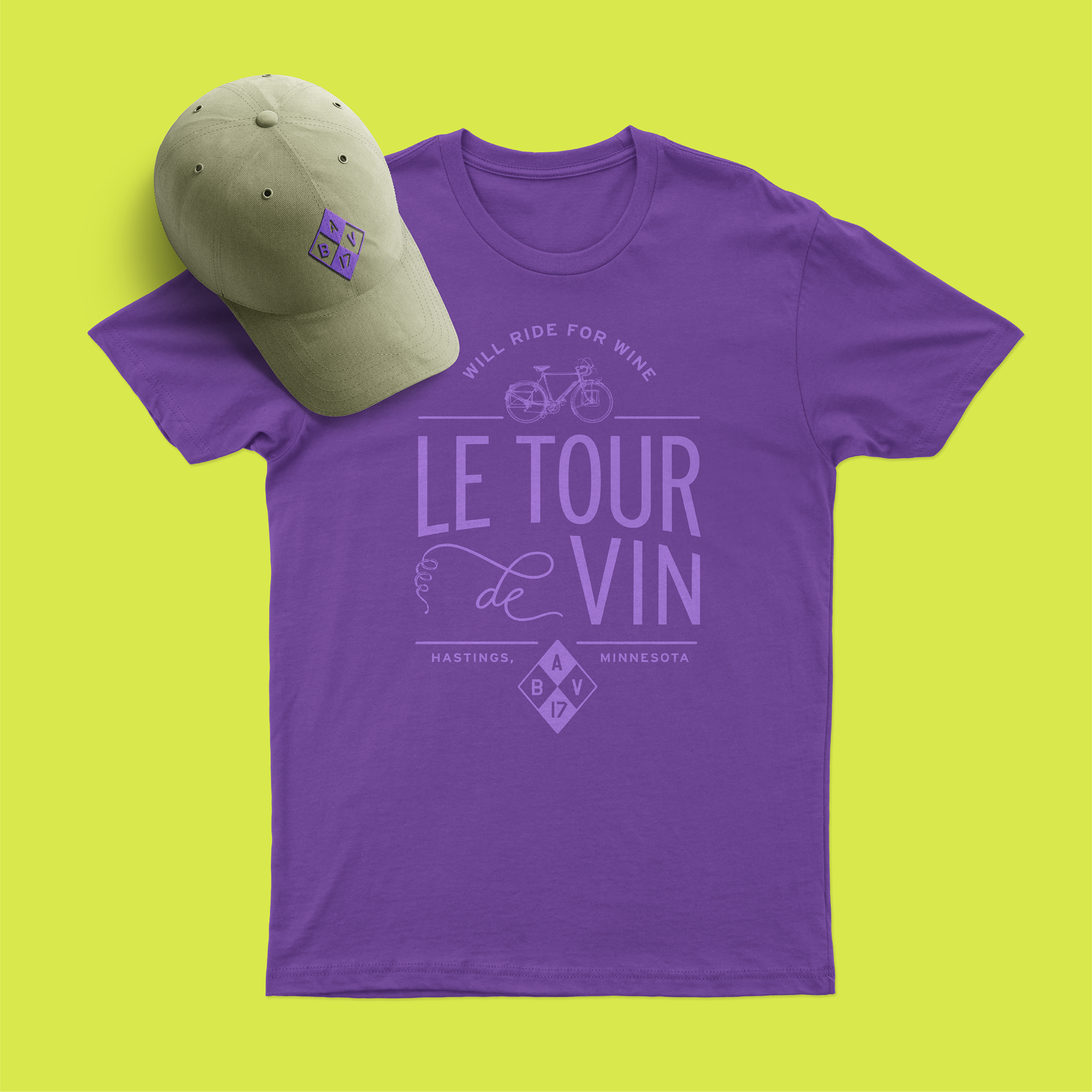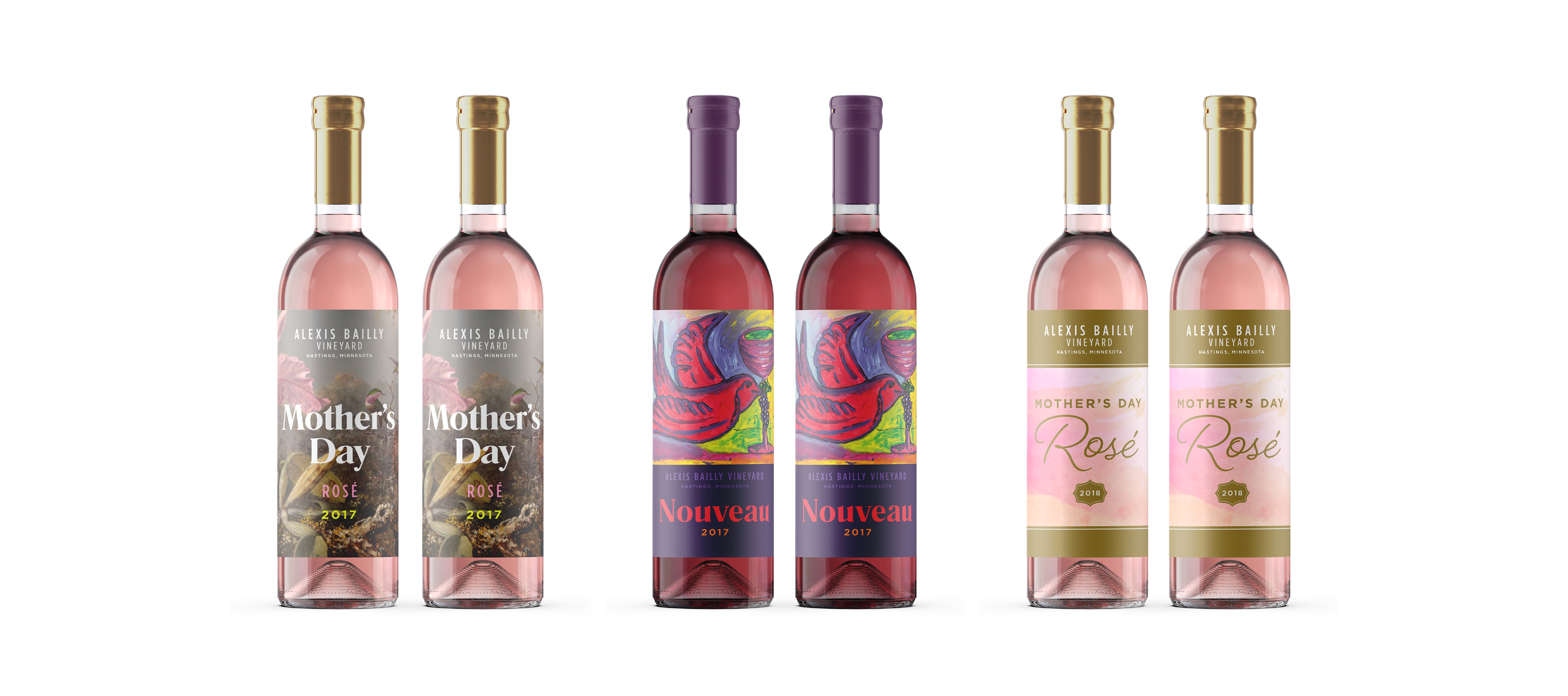Packaging, merchandise, and wayfinding design for Minnesota's first winery. Client: Nan Bailly