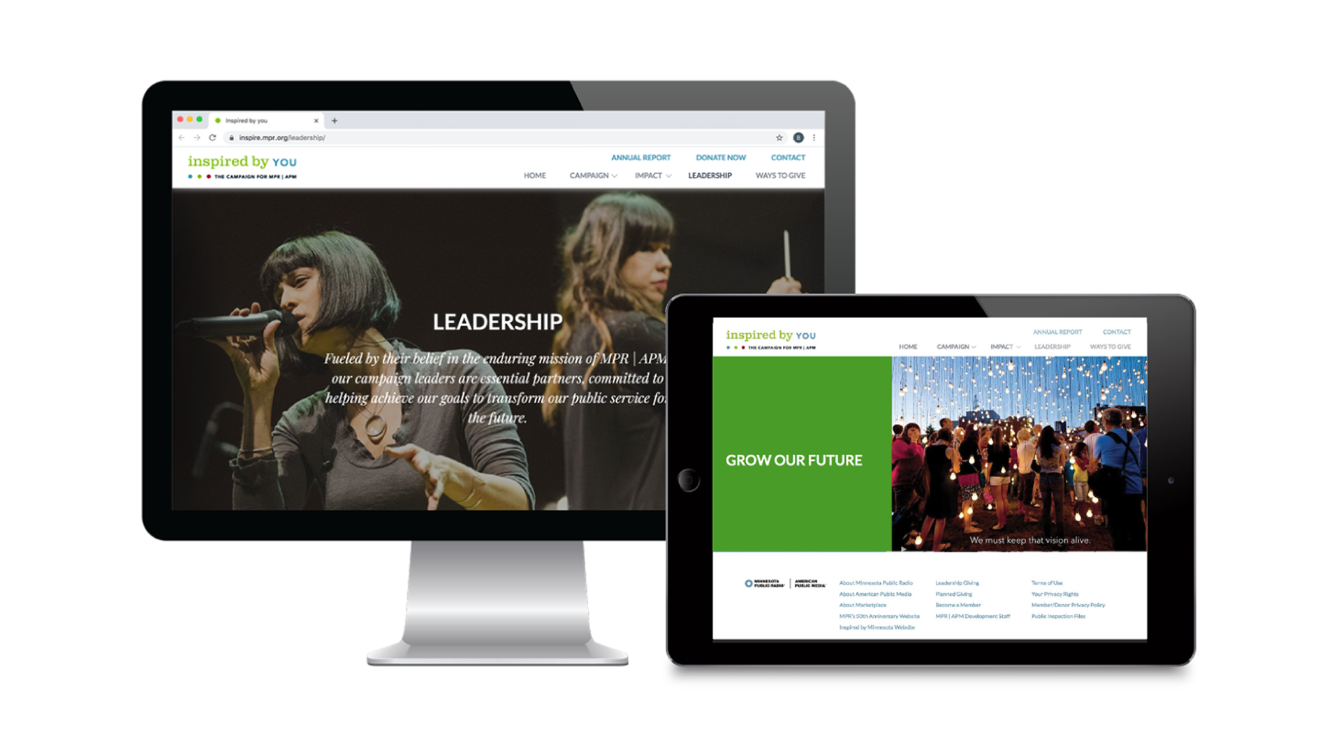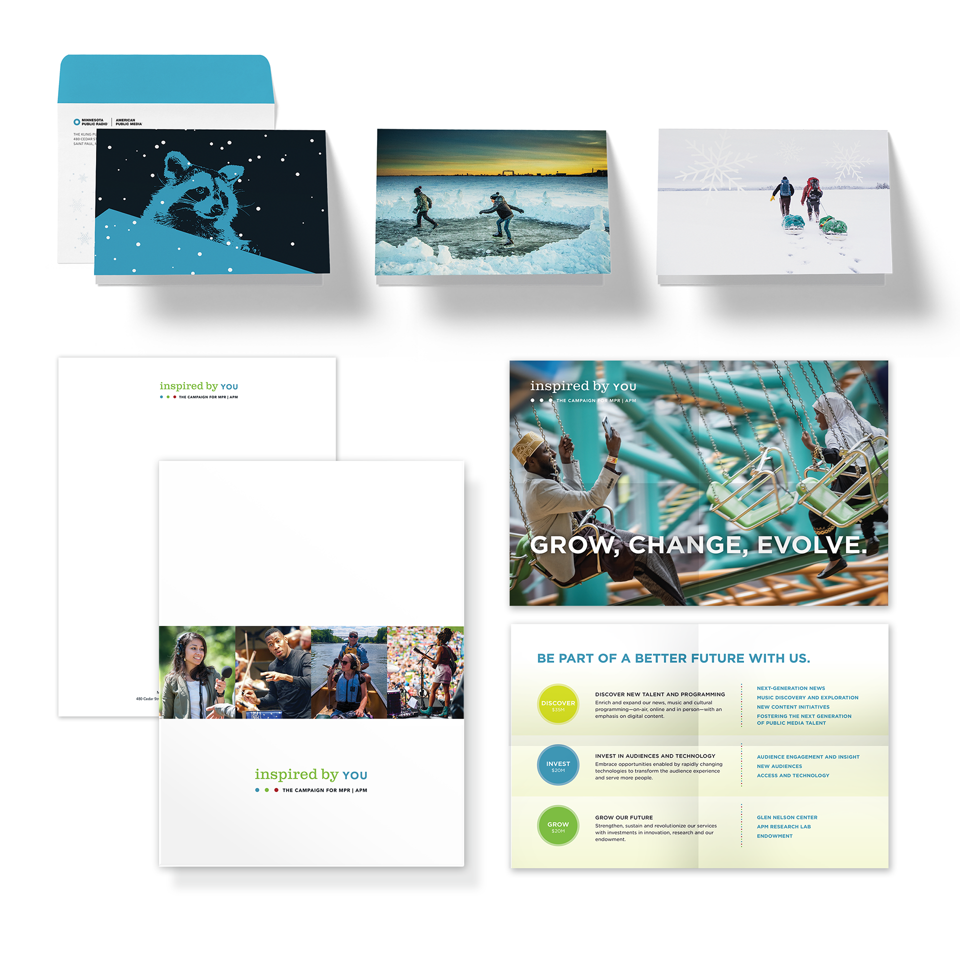 Identity, web, print, and collateral design for MPR / APM's capital campaign. Client: Evology Creative